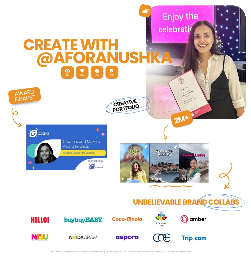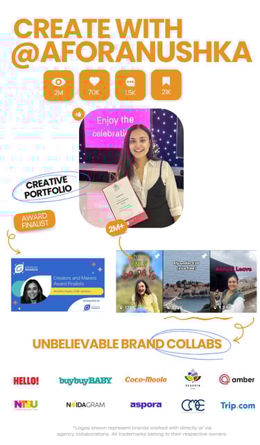 I’m Anushka, a UK-based content creator, UGC strategist, and brand storyteller behind @aforanushka — helping fashion and lifestyle brands grow through high-performing, authentic content.